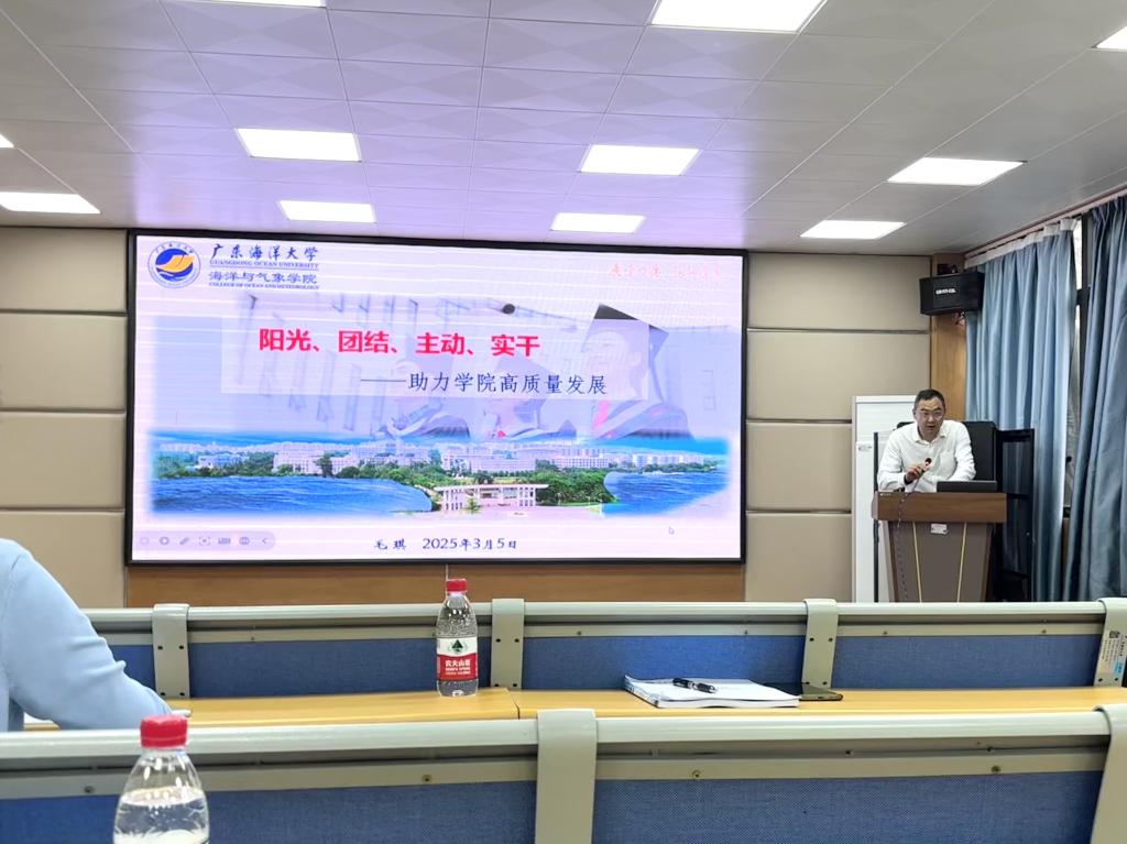 最后,毛琪书记在总结发言中鼓励全体教职工携手奋进,以饱满热情推动学院事业发展,助力学校高质量发展,为建设高水平海洋大学贡献力量。此次会议为学院2025年发展明确路径、凝聚共识,奠定坚实基础。