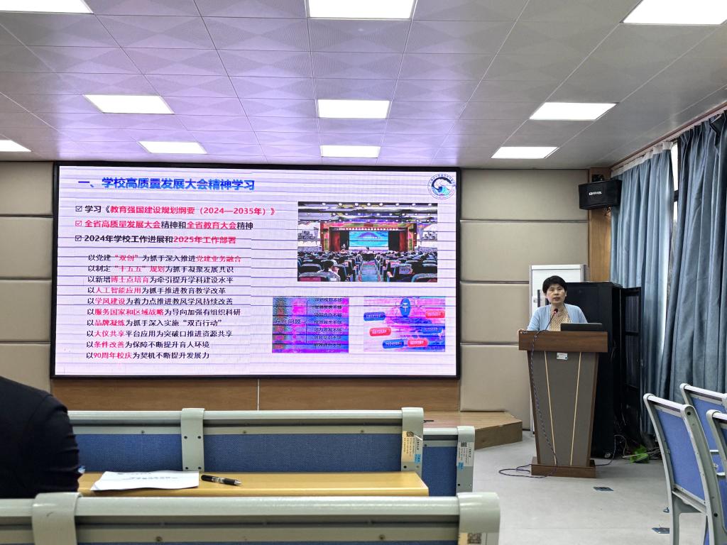 会上,各分管领导依次汇报工作。谢玲玲经理总结过去一年学院总体建设情况,提出了2025年学院重点工作建议,鼓励老师们积极关注政策、参与科研项目;薛宇峰副经理围绕教学建设,梳理课程改革与成果,规划了新学期工作重点;侯庆华副经理介绍学科发展现状,指出学科提升的重要指标,提出了新的工作目标;郑少军副经理就科研平台及研究生教育,汇报项目进展与培养计划;胡森林副书记就员工工作情况进行全面总结,提出了员工工作新思路;毛琪书记强调党建工作的重要性,阐述了五个保障措施,提出了新的工作任务。