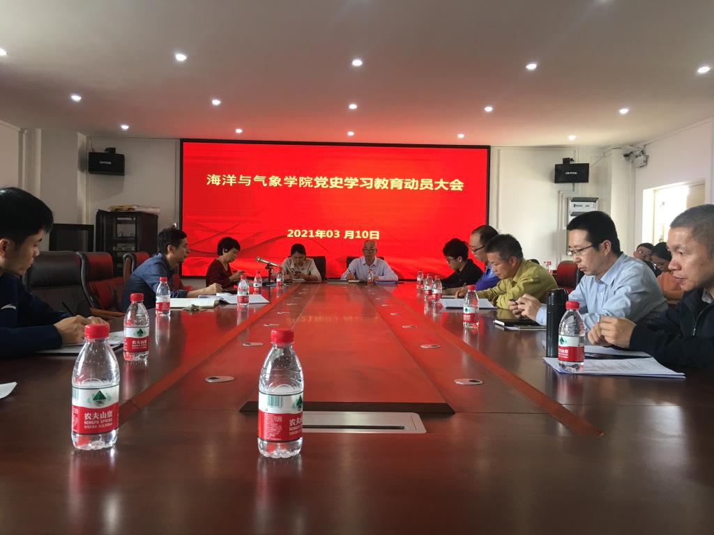 3月10日下午,在学院海科楼505会议室召开党史学习教育动员大会,学院领导和全体师生党员参加大会,由党委书记陈晓主持并作动员讲话。