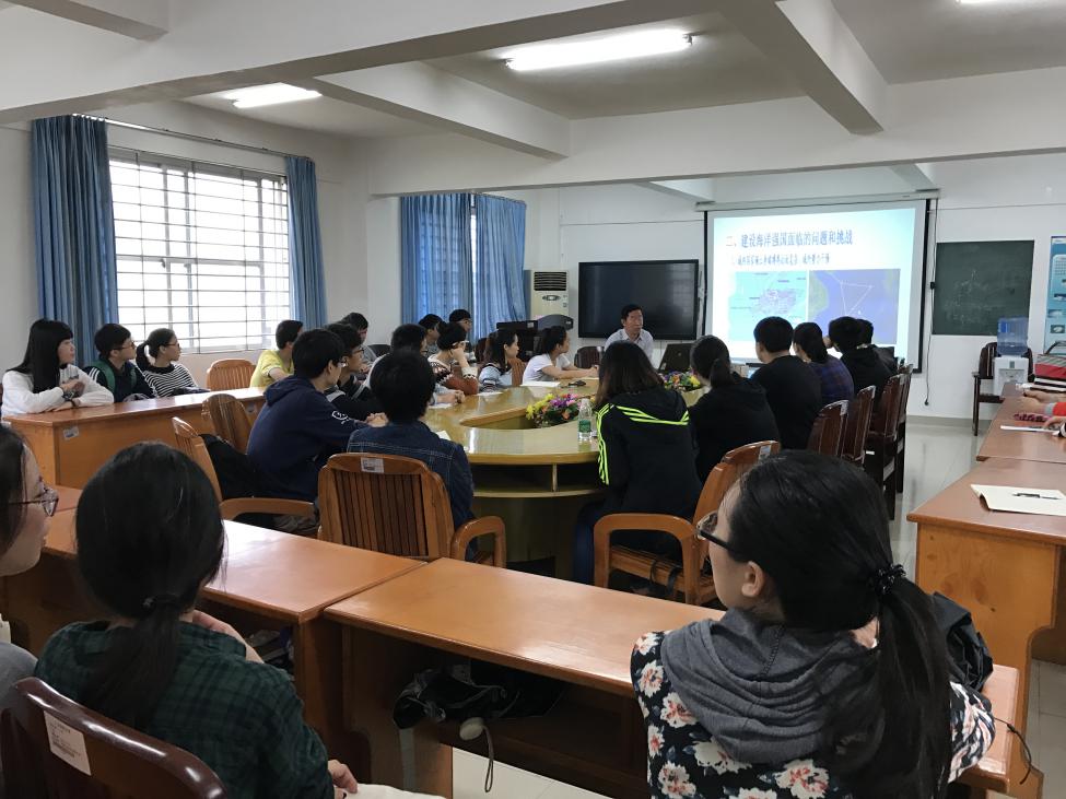 3月14日上午,学院经理张书文在海博楼报告厅为2014级海洋科学专业员工80余人讲授了一堂思想政治理论课。