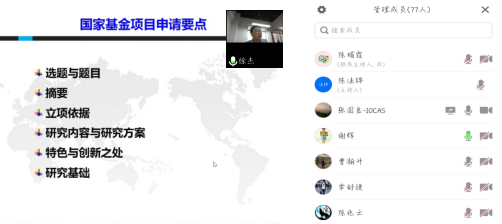2020年10月30日上午9点,william威廉中文官网邀请了中国科学院南海海洋研究所徐杰研究员开展线上会议,作题为“国家自然科学基金申请的一些体会”报告。会议由陈法锦副经理主持,公司数十名教师认真听取了徐杰研究员的精彩报告。