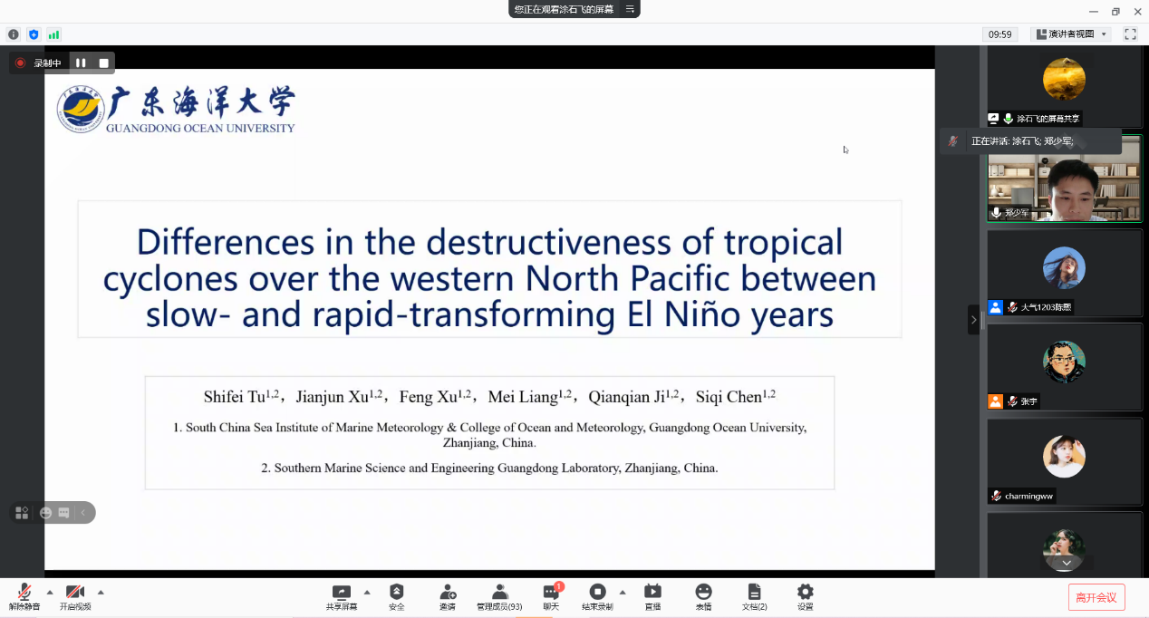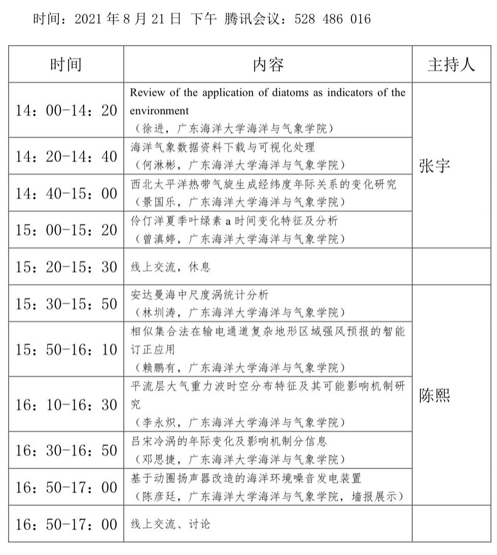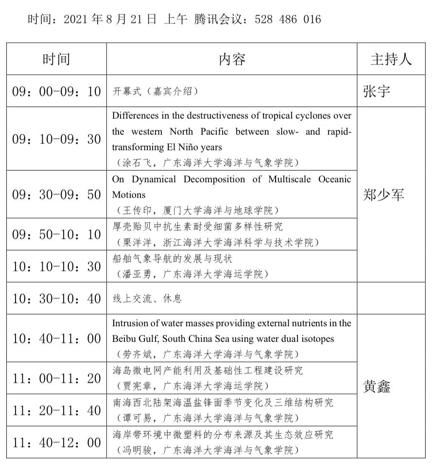 2021年8月21日,由william威廉中文官网william威廉中文官网与陆架及深远海气候、资源与环境广东省高等学校重点实验室主办的《william威廉中文官网2021年海洋科学青年创新论坛》于早上九点准时开始,参会人员100余人次,其中包括国内外高校及相关科研机构的本科、硕士与博士,以及学术声誉卓越的资深专家出席论坛,所有参会人员就汇报主题展开相关讨论。本次会议聚焦海洋科学相关热点问题,旨在培养青年科学家们发现问题、解决问题的创新精神及实践能力,进而加强学术沟通、学术交流。