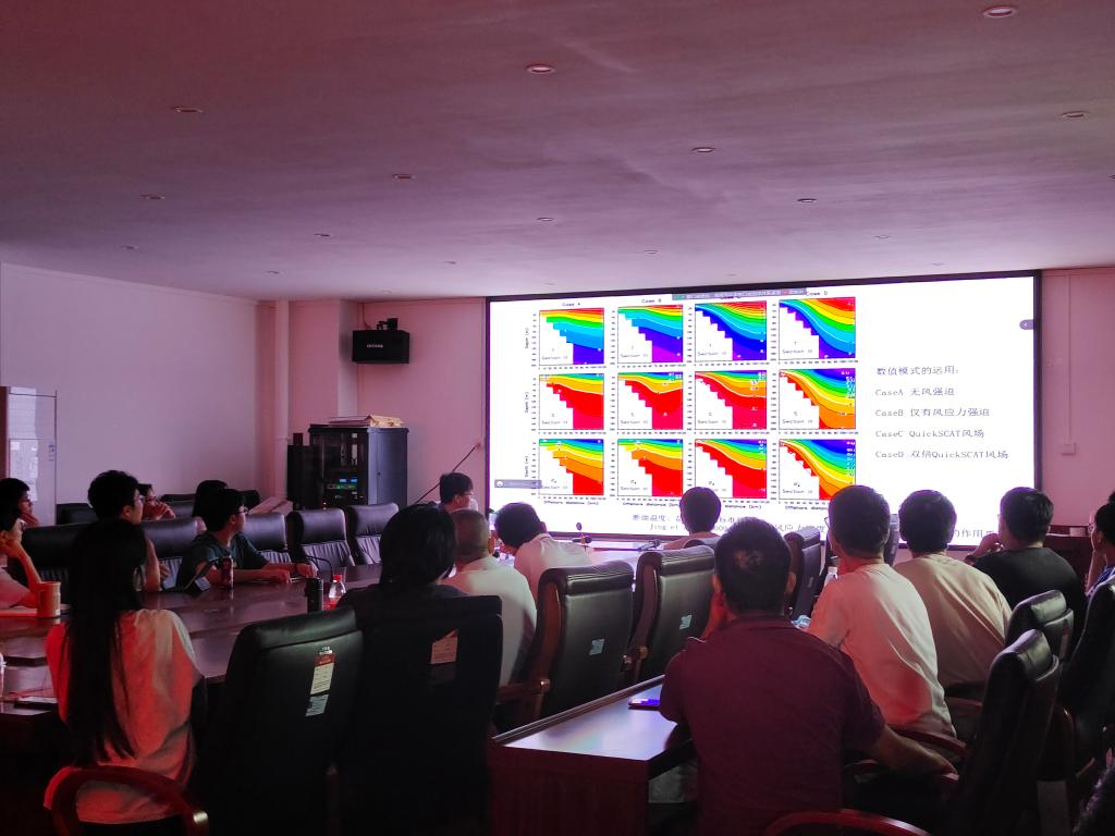 徐洪周研究员为公司师生做了题为“琼东上升流动力过程及其生态效应”的学术报告,报告主要分为三个部分。在第一部分,基于海洋数值模式的模拟结果,徐老师展示了台风对于琼东上升流的影响,指出台风会在一定程度上减弱琼东上升流过程,但是台风造成的混合增强仍然会引起当地的“生物爆发”现象。在报告的第二部分,徐老师着重讲述了内潮过程对琼东上升流影响的研究,研究结果表明,在海南沿岸海区,内潮可以增强琼东上升流过程。在报告的最后一部分,徐老师主要阐述了琼东上升流海区的生态效应,发现海南以东海区生物多样性的年际变化并不能与ENSO现象完美对应。此次海学论坛中,徐老师从动力和生态两个方面描述了琼东上升流过程及其效应,在为老师和同学们带来精彩报告的同时,也为学院的相关研究带来了新的视角和思路。
