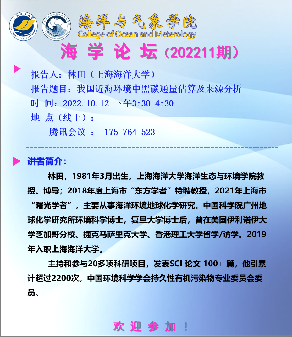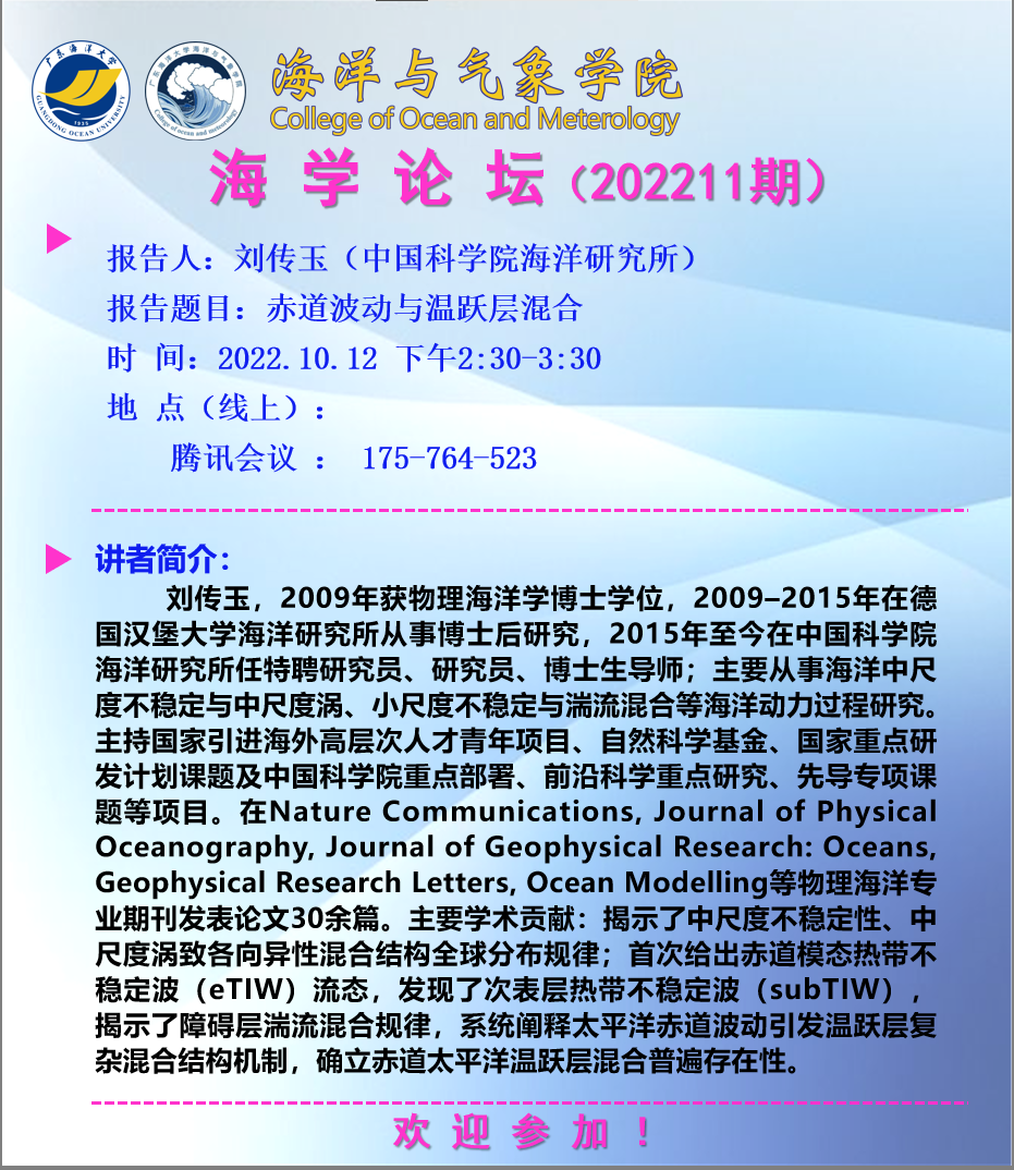 【学术报告预告】william威廉中文官网“海学论坛”(202211期)