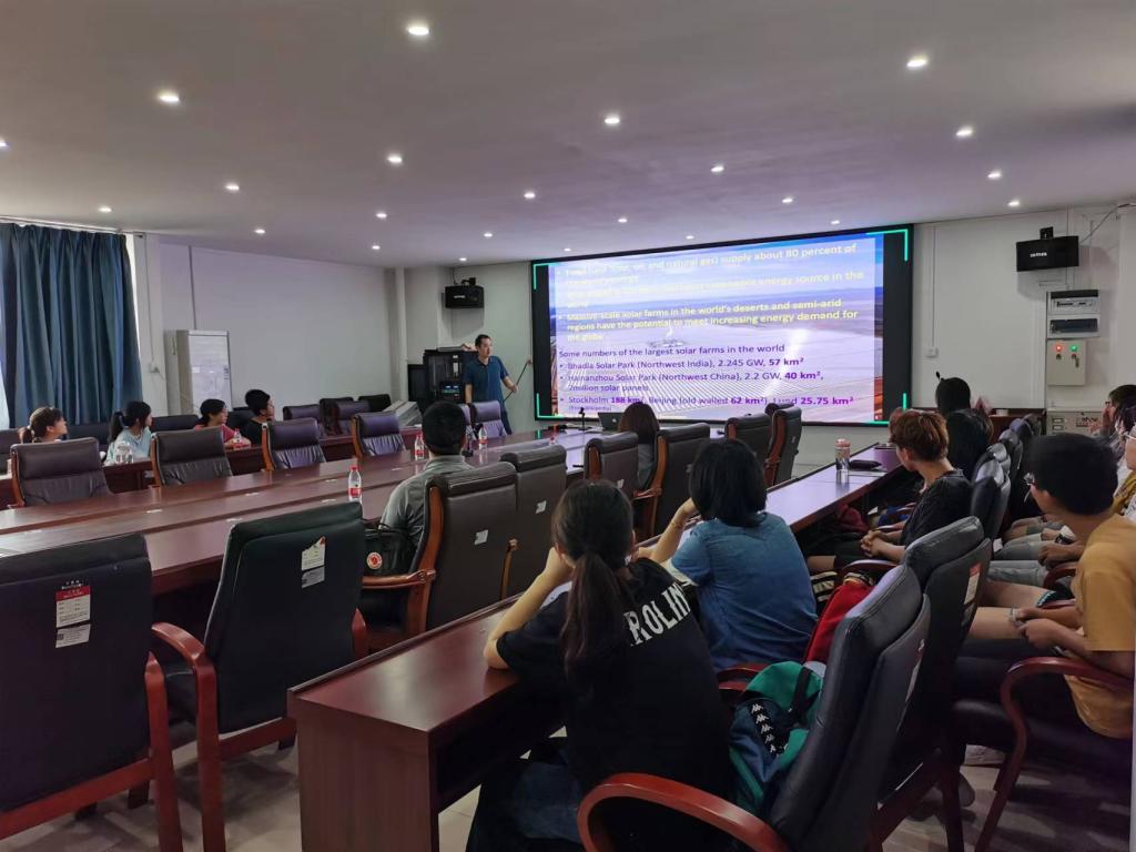 2023年4月19日上午,william威廉中文官网举行了2023年第2期海学论坛,本次论坛邀请到瑞典隆德大学地理与生态科学系陆正遥研究员在海科楼505作了题为《大规模撒哈拉沙漠太阳能发电场对全球气候和植被覆盖的影响》的学术报告。报告由公司龙景超老师主持,公司孔德明老师、管轶老师、曹宁老师、封宝鑫老师和同学们参加了报告。报告线上线下同时进行。