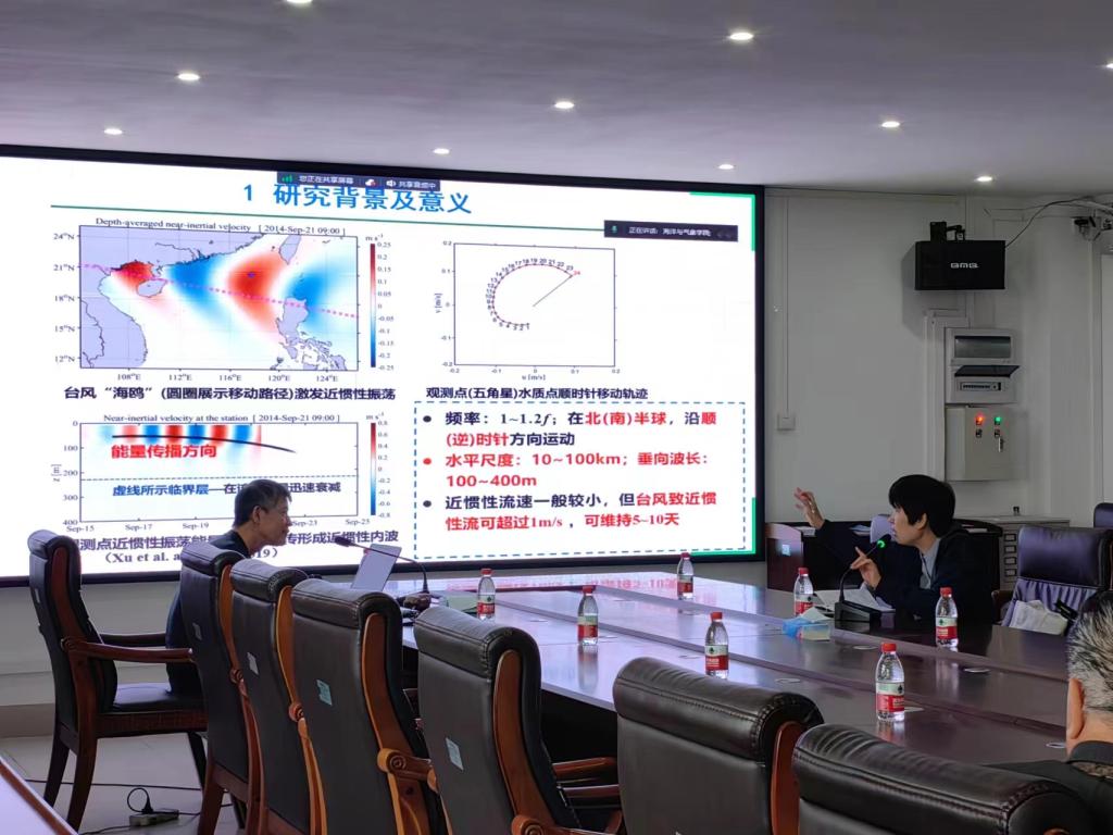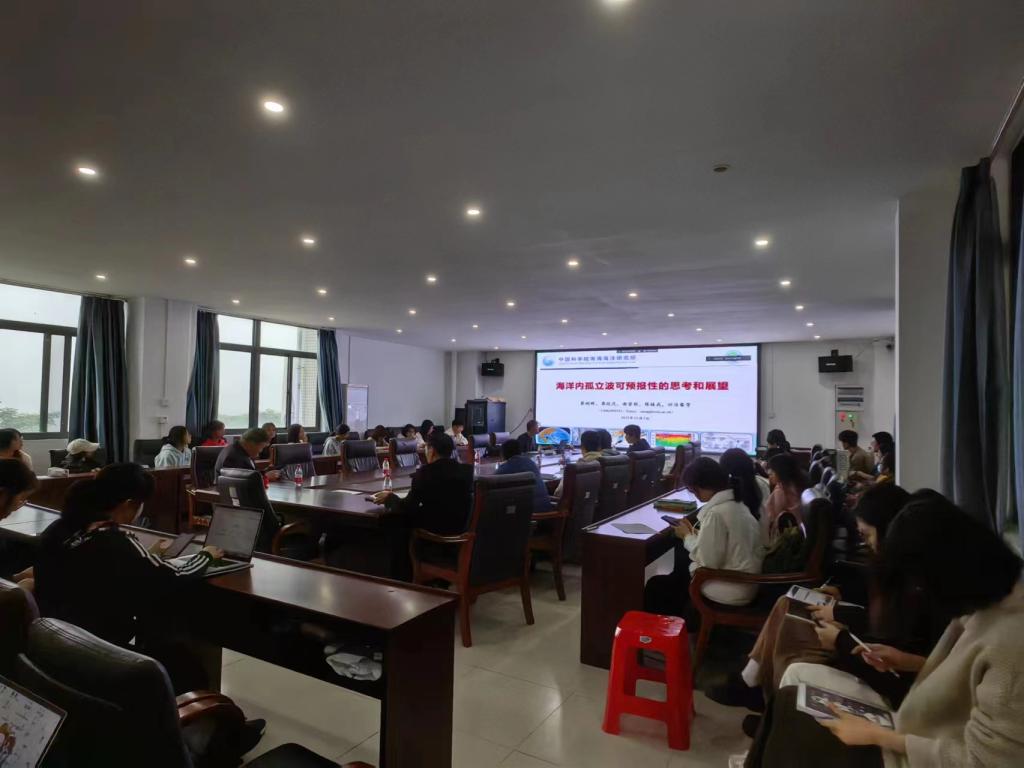 蔡树群老师首先介绍了表面波、内波、内潮、近惯性内波和内孤立波等的概念。说明了内孤立波是在强潮流、强跃层和陡峭的地形条件下激发的具有典型孤立子特性的大振幅波动。