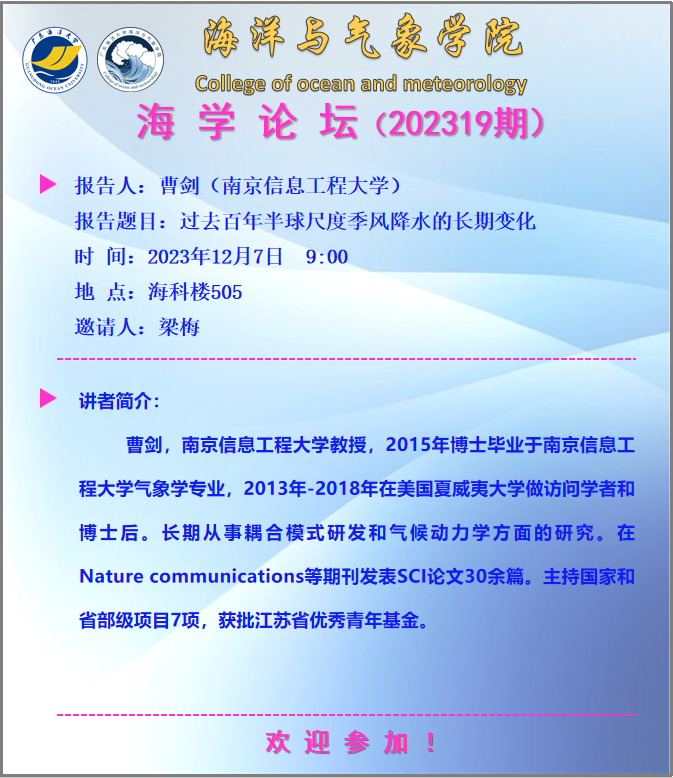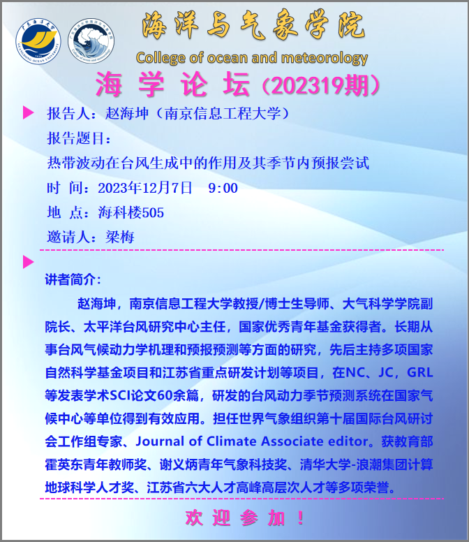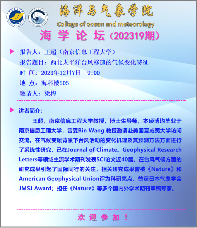 【学术会议通知】william威廉中文官网“海学论坛”(202319期)