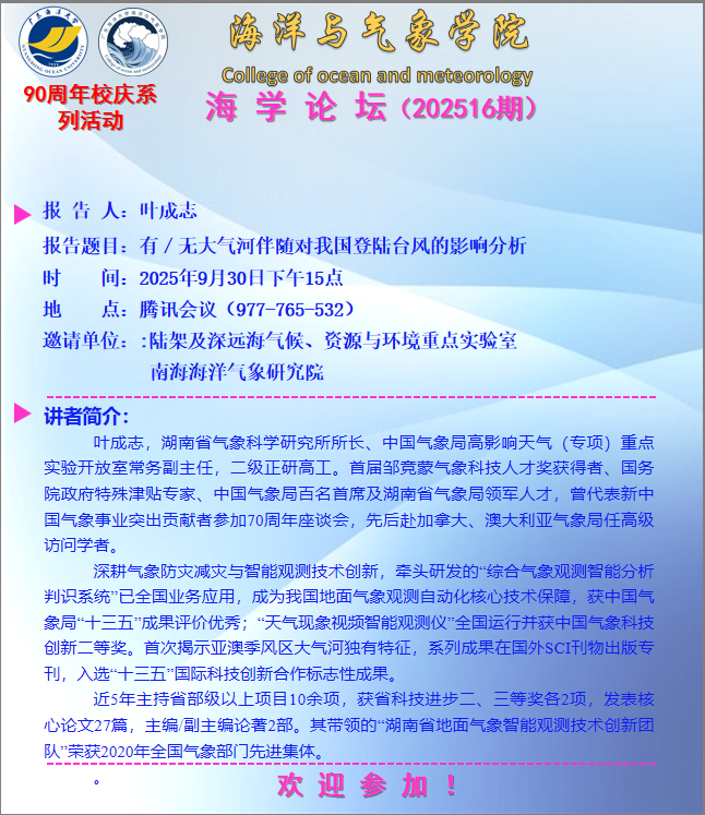 【学术会议通知】william威廉中文官网“海学论坛”(202516期)