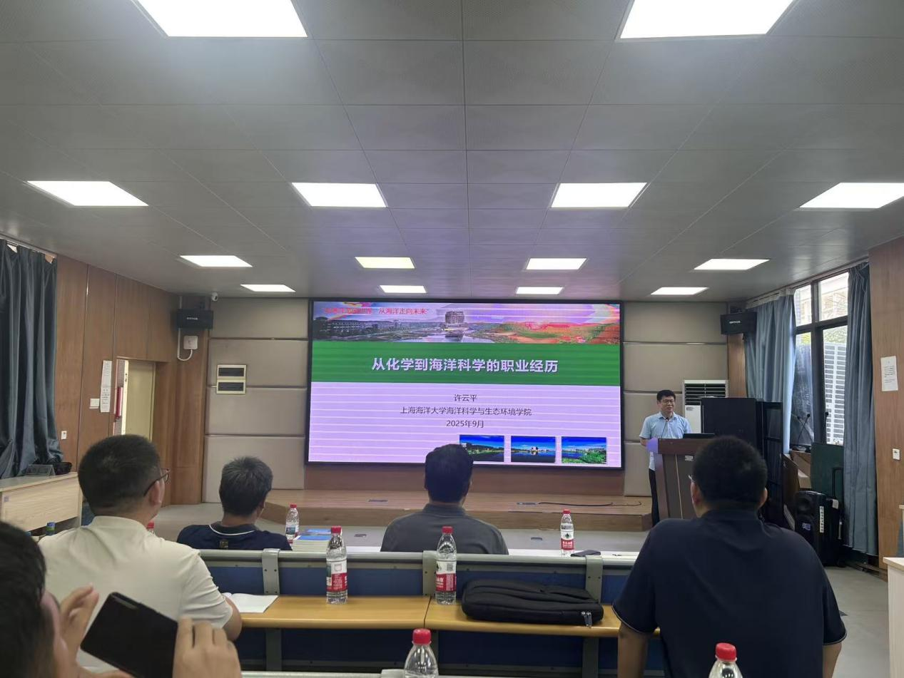 上海海洋大学海洋科学与生态环境学院副经理(主持行政工作)许云平教授率先分享,结合自身 “从化学到海洋科学” 的科研经历,鼓励同学们深耕学业、积极钻研,为海洋事业发展贡献青春力量。随后的招生宣讲环节,许云平副经理详细介绍该校海洋科学与生态环境学院的学科布局、团队力量及科研平台,重点解读海洋化学方向的培养特色、招生名额与报考条件,并说明推免政策和奖学金体系。