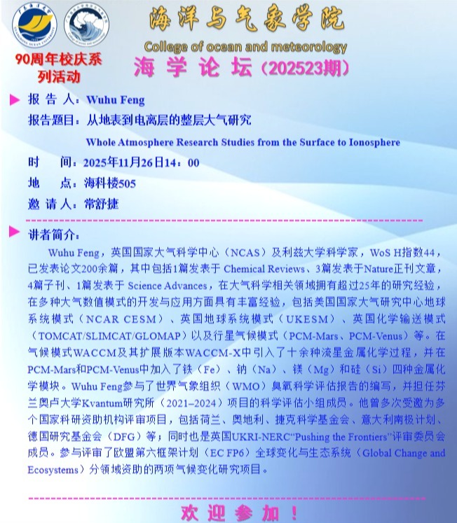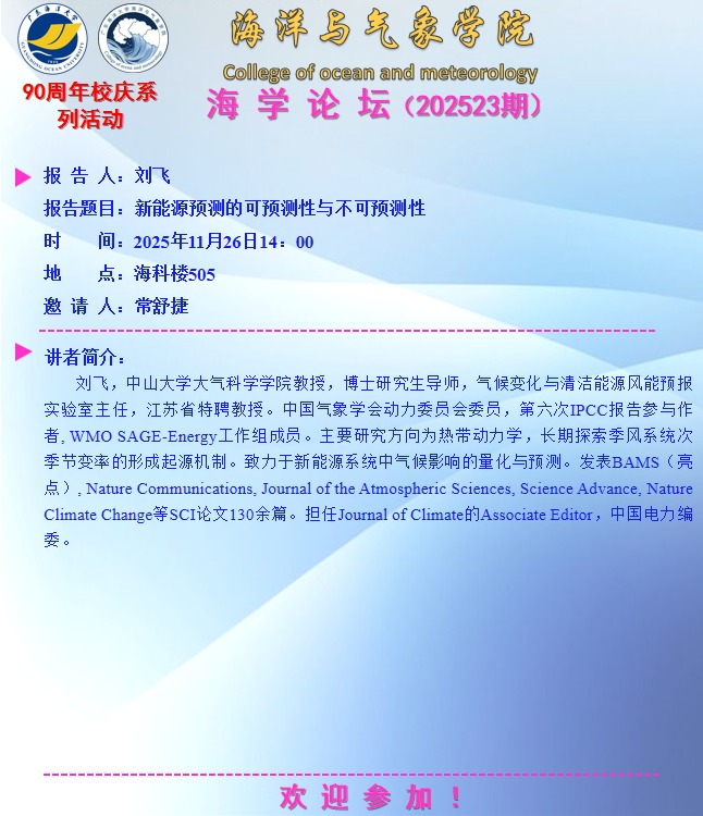 【学术会议通知】william威廉中文官网“海学论坛”(202523期)