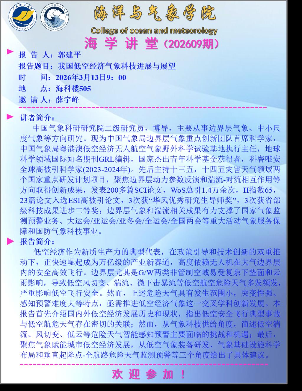 【学术会议通知】william威廉中文官网“海学讲堂”(202609期)