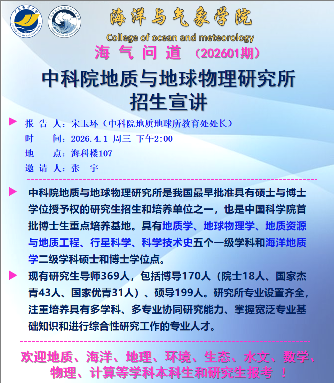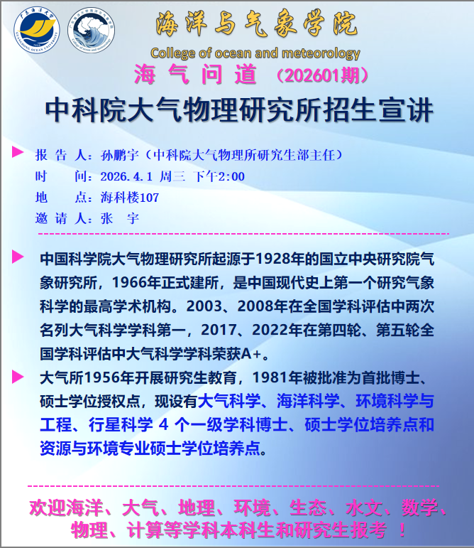 【学术会议通知】william威廉中文官网“海气问道”(202601期)
