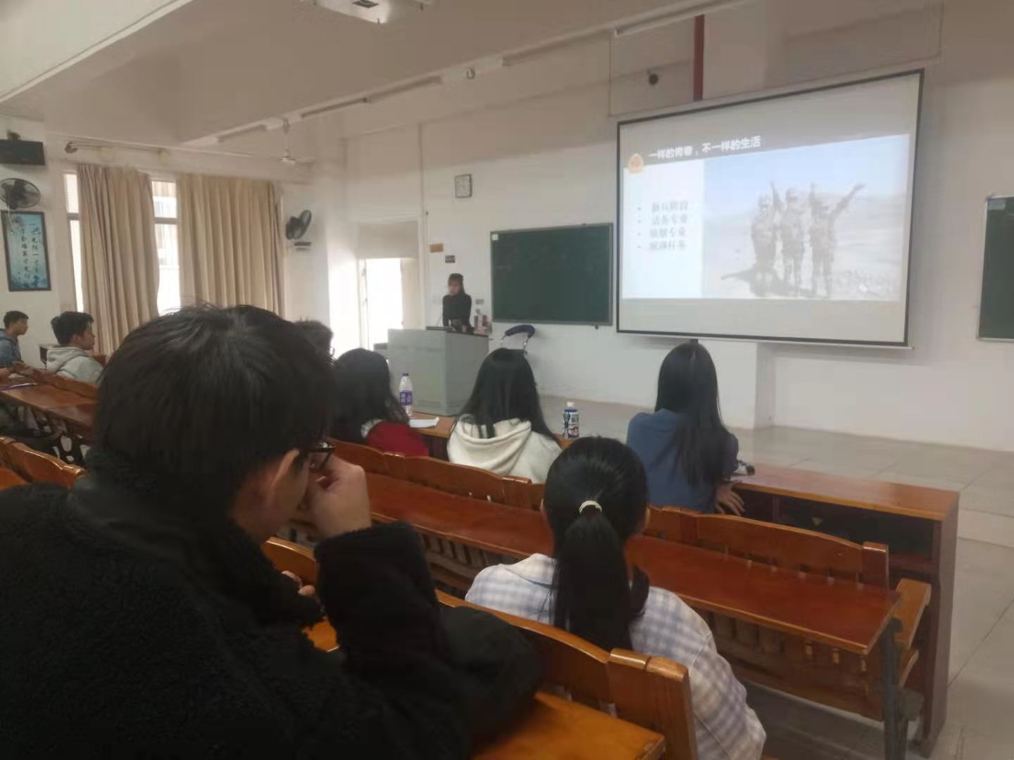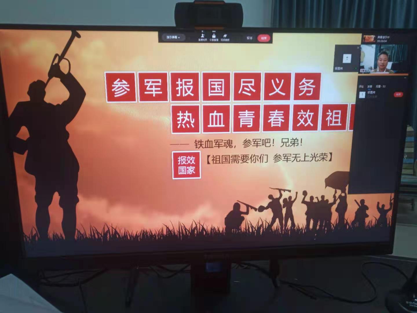 师生宣讲会结束后,通过学校企业微信,在全院员工中进行宣讲,线上宣讲由兼职武装干部、辅导员林海峰老师主持,海地1183班杨桂琼、海洋1191班邹昱炜和海气1193班黄港珍三位同学以观看军营视频、照片、报道等方式,图文、声情并茂,与同学们回忆热血军营生活,鼓励同学们积极投身军营,青春在逐梦中成长,人生因奋斗而升华;参军报国,不负年华,一次选择,一生无悔!立即行动,向祖国报到!