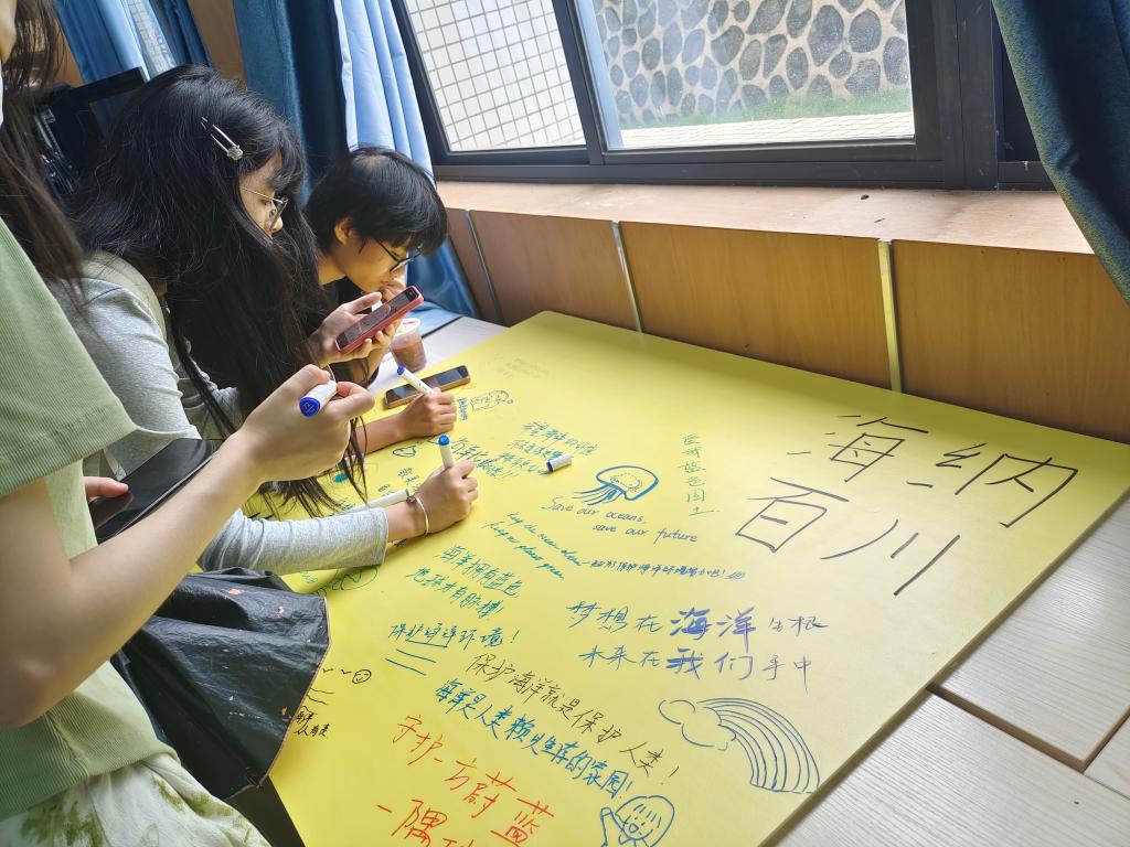 在五彩斑斓的许愿板上,员工们用心写满了对海洋的深深祝福和美好愿景,写下自己对海洋的热爱与保护海洋的承诺。“海洋许愿墙”吸引了众多师生参与,促进了校园文化建设,增强了师生的环保意识。