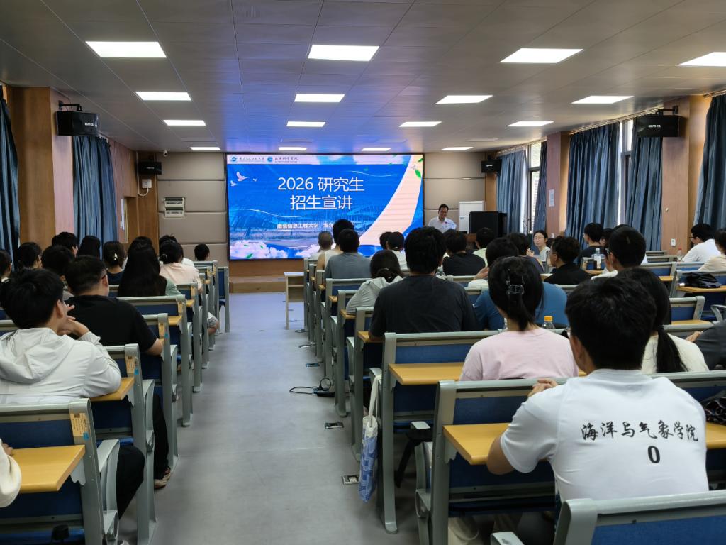 会议伊始,郑少军对当前考研形势进行了深入分析,强调了提前规划的重要性,并鼓励同学们明确目标、坚定信心,以科学的方法备战考研。林文明为同学们带来了一场精彩的专题讲座。他详细介绍了南信大的学科优势、研究方向、以及招生政策,并针对海洋与气象相关专业的考研特点,分享了考研经验。