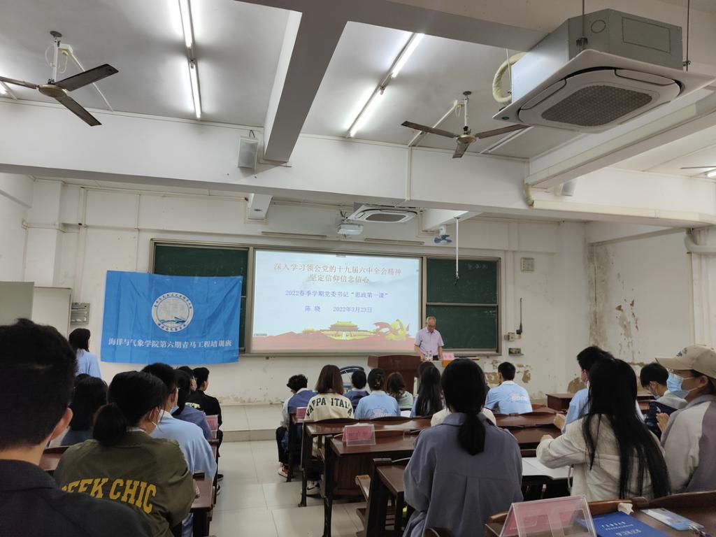 3月23日下午,公司党委书记陈晓在钟海楼03020室为学院青马班同学以《深入学习领会党的十九届六中全会精神,坚定信仰信念信心》为题讲授第六期青马工程培训班青马第一课。