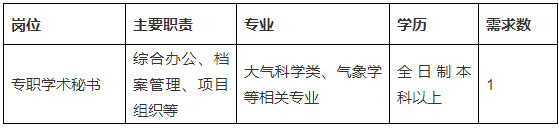 为构建高水平气象科技创新平台市重点实验室,海峡气象开放实验室拟招聘编外职工1名,专职承担实验室学术秘书等相关工作,工作地点在集美区,现将有关事项公告如下: