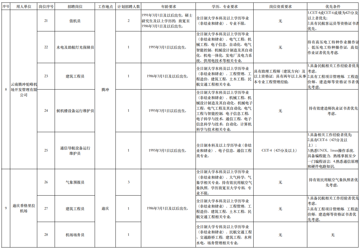 云南航空产业投资集团有限责任公司2021.11公开招聘公告(含气象)