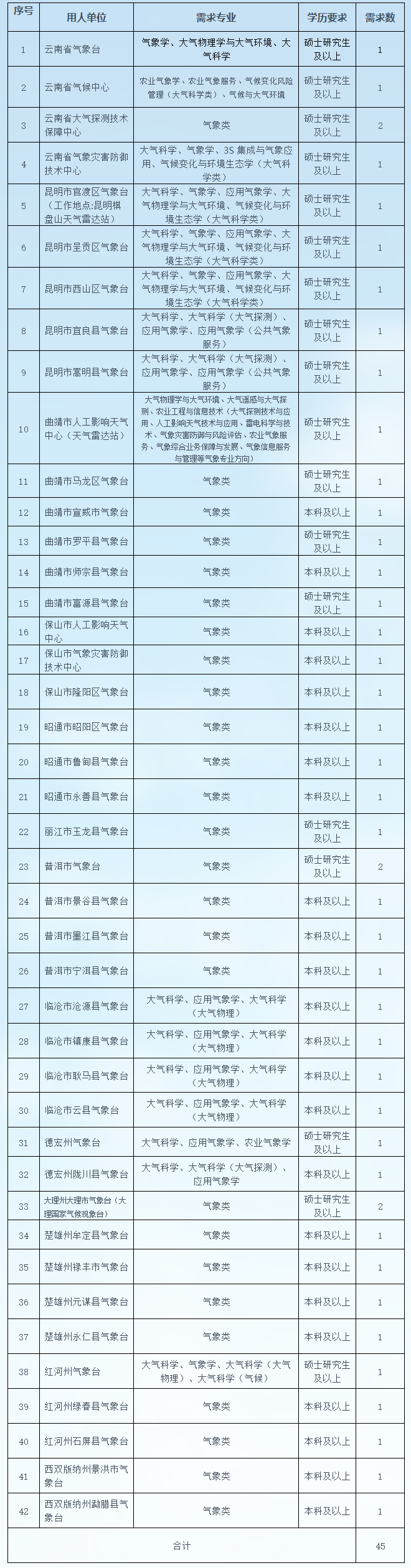 附件:1. 云南省气象事业单位2022年度公开招聘气象类专业高校毕业生(第一批)岗位计划