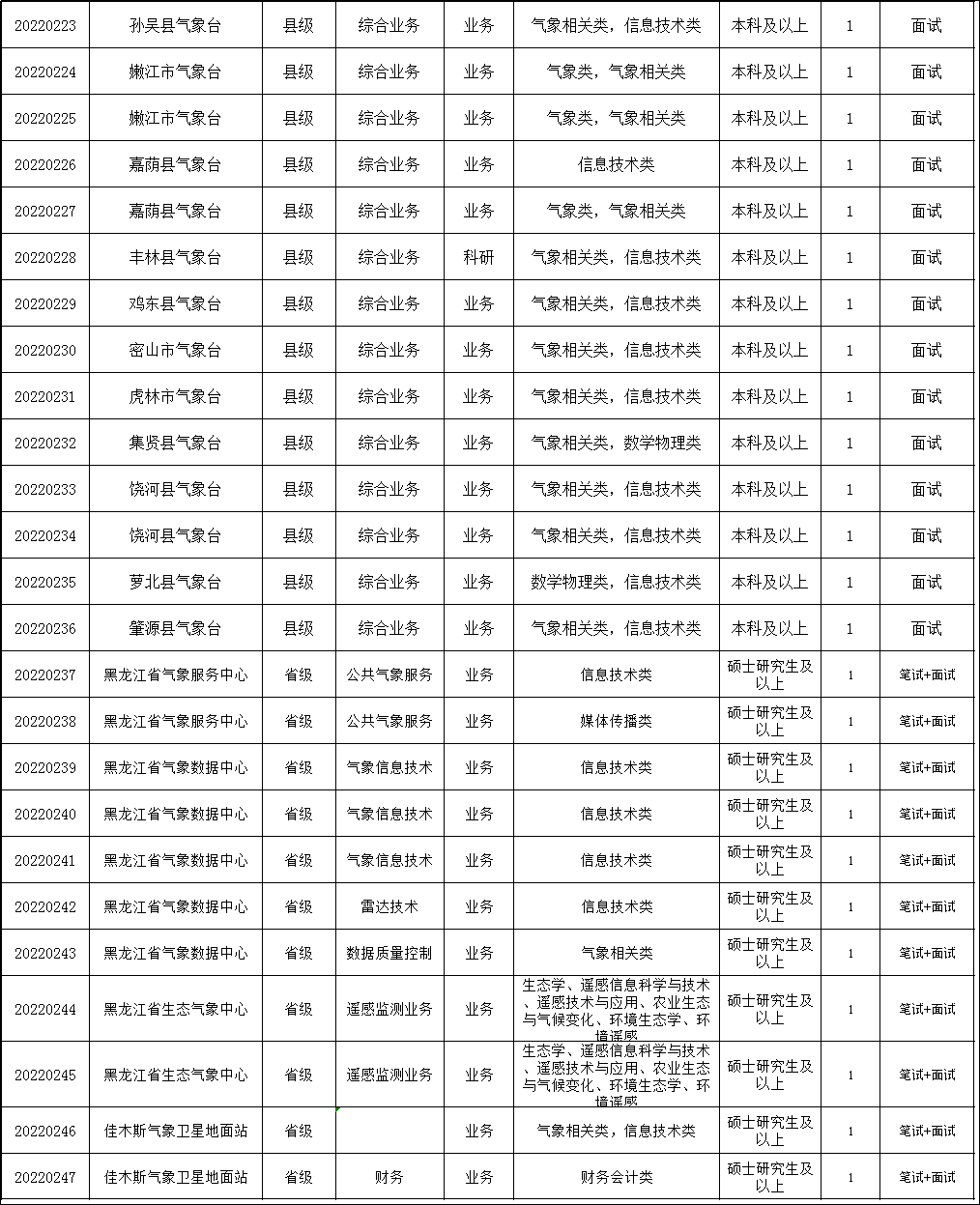 1.黑龙江省气象部门2022年事业单位公开招聘高校毕业生(第二批)岗位需求计划表