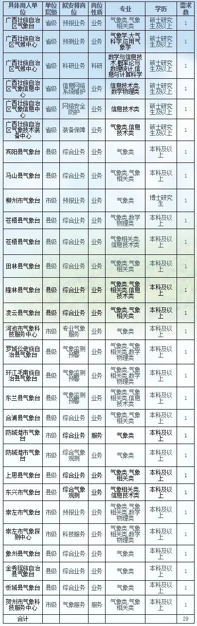 附件:1. 广西气象局2022年度事业单位补充招聘本科以上毕业生需求信息表