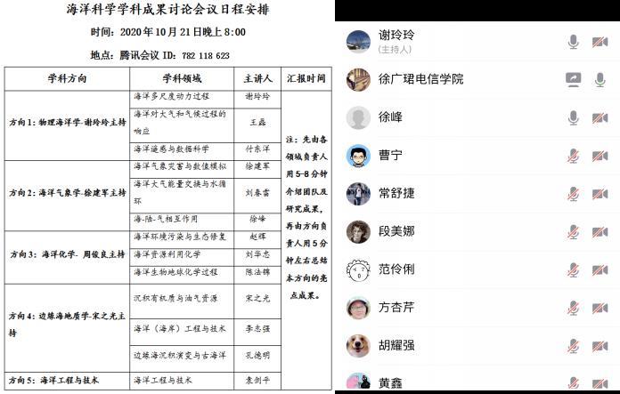 10月21日晚上8:00,公司海洋科学学科召开了科研成果交流讨论会。本次研讨会由海洋科学学科负责人谢玲玲教授主持,采用腾讯线上会议的形式,徐建军、周俊良、宋之光、徐峰、赵辉、陈法锦、刘华忠、李志强、王磊、刘洺辛、孔德明、徐广珺等方向和领域负责人(代表)以及学科骨干成员40多人参加了会议。