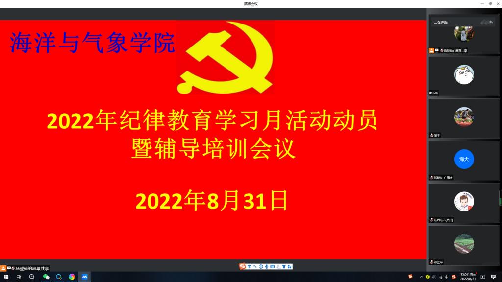 8月31日下午,学院线上召开2022年纪律教育学习月活动动员暨辅导培训会,学院领导、党委委员、纪委委员、副科级以上干部和全体教工党员50人参加,党委书记陈晓作动员讲话暨专题辅导报告,党委委员林海峰对学院2022年纪律教育学习月活动作安排,副经理陈法锦主持会议。
