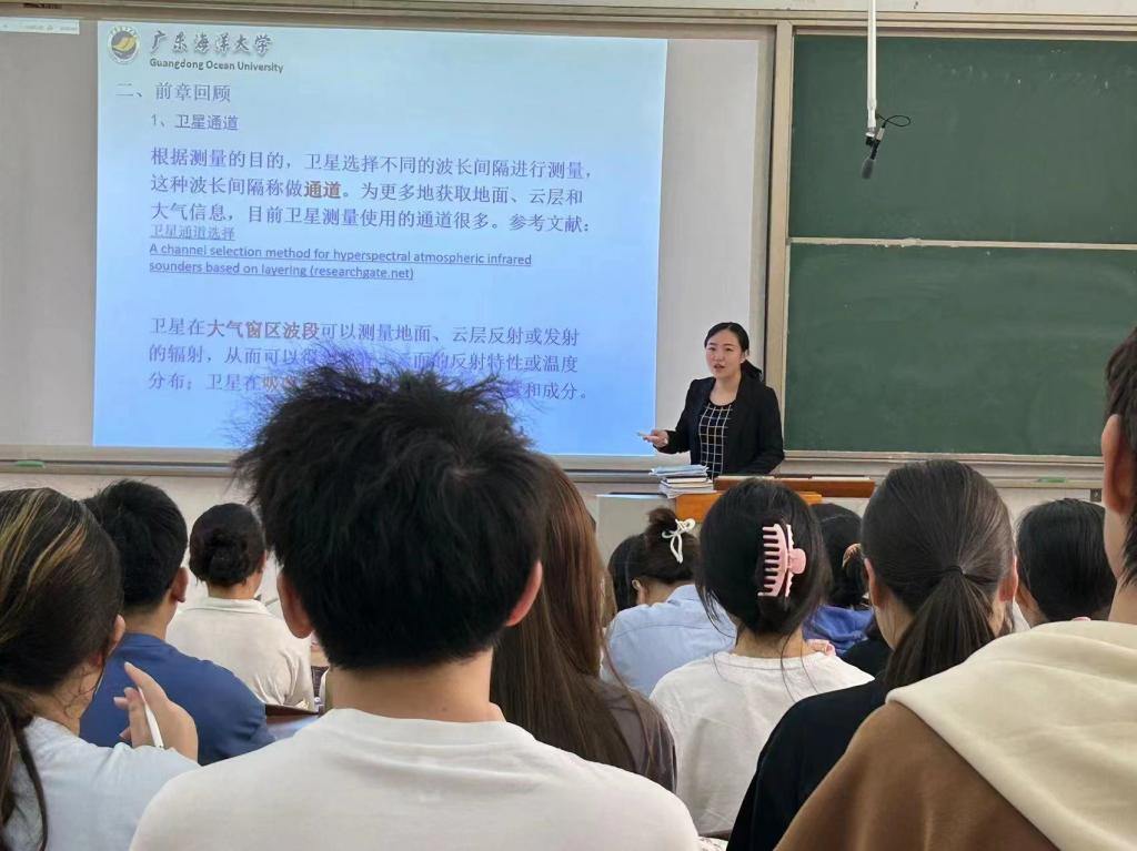 第二场观摩课由获得学校第11届教学质量优秀奖获得者——常舒捷老师主讲,内容为专业基础课——《卫星气象学》,授课内容为“气象卫星图像的分析基础”。常老师通过开展课程回顾方法回顾了卫星通道、吸收带和大气窗,引导员工对可见光卫星云图、红外云图、水汽图的相关知识,同时,紧密联系生活实践,利用例证法进而说明三种卫星图像的区别与联系。通过讲解发生于今年的有气象记录以来全球最长寿的热带气旋“弗雷迪”相关的卫星云图使本来非常难于记忆与枯燥的知识点变得浅显易懂;此外,巧妙设置问题,引起员工思考,激发学习兴趣。