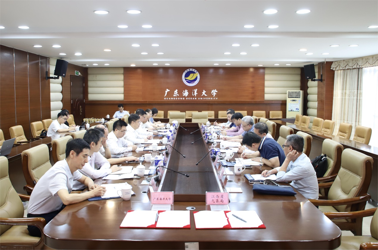 杨洲代表公司师生对江西省气象局各位领导的到来表示热烈欢迎,对气象部门长期以来对公司发展的大力支持表示衷心感谢。他从“有历史、有规模、有特色、有潜力”四个方面简要介绍了公司的办学历史、办学规模、学科特色与科教成果,以及学校校区地处湛江、深圳和阳江的区位优势,并表示随着双方全面合作协议的签署,公司大气科学将迎来更大的发展空间,相信在团队建设、人才培养、科学研究和成果转化等方面将会结出丰硕成果。
