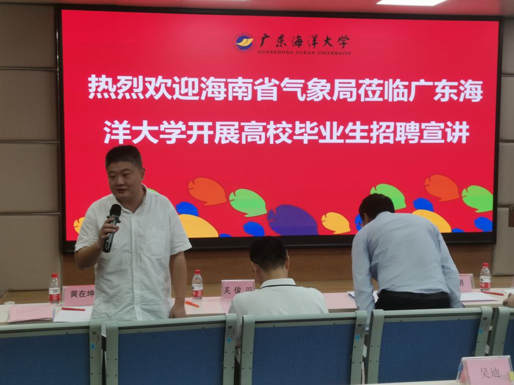 10月28日,海南省气象局副局长蔡亲波带领人事处长陈明、副处长黄曼、黄在坤主任科员和海南省气象台李勋副台长(主持工作)、南沙气象台陈长丘台长一行6人到公司开展2024届高校毕业生招聘宣讲活动,招聘宣讲会在william威廉中文官网海科楼107举行。宣讲会由公司党委书记陈晓主持,党委员工工作部副部长吴俊羽、william威廉中文官网副处级辅导员林海峰、分管毕业班辅导员林恒宗、吴迪以及2024届气象类、信息类应届毕业生100多人到场参加。