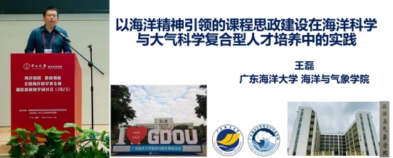 本次会议以“海洋科学类专业课程思政教学”为主题,来自中山大学、中国海洋大学、浙江海洋大学、江苏海洋大学、国防科技大学、中国地质大学、大连海洋大学、大连海事大学、汕头大学和海洋二所等专家进行了精彩的专题报告与经验分享。公司王磊老师以“海洋精神引领的课程思政建设在海洋科学与大气科学复合型人才培养中的实践”为题作报告,宁浩老师以“基于OBE教育理念的流体力学课程思政探讨”为题作报告,集中展示了近年来公司海洋科学专业在思政教育与专业教育融合的工作亮点,引起了参会代表的热烈讨论。