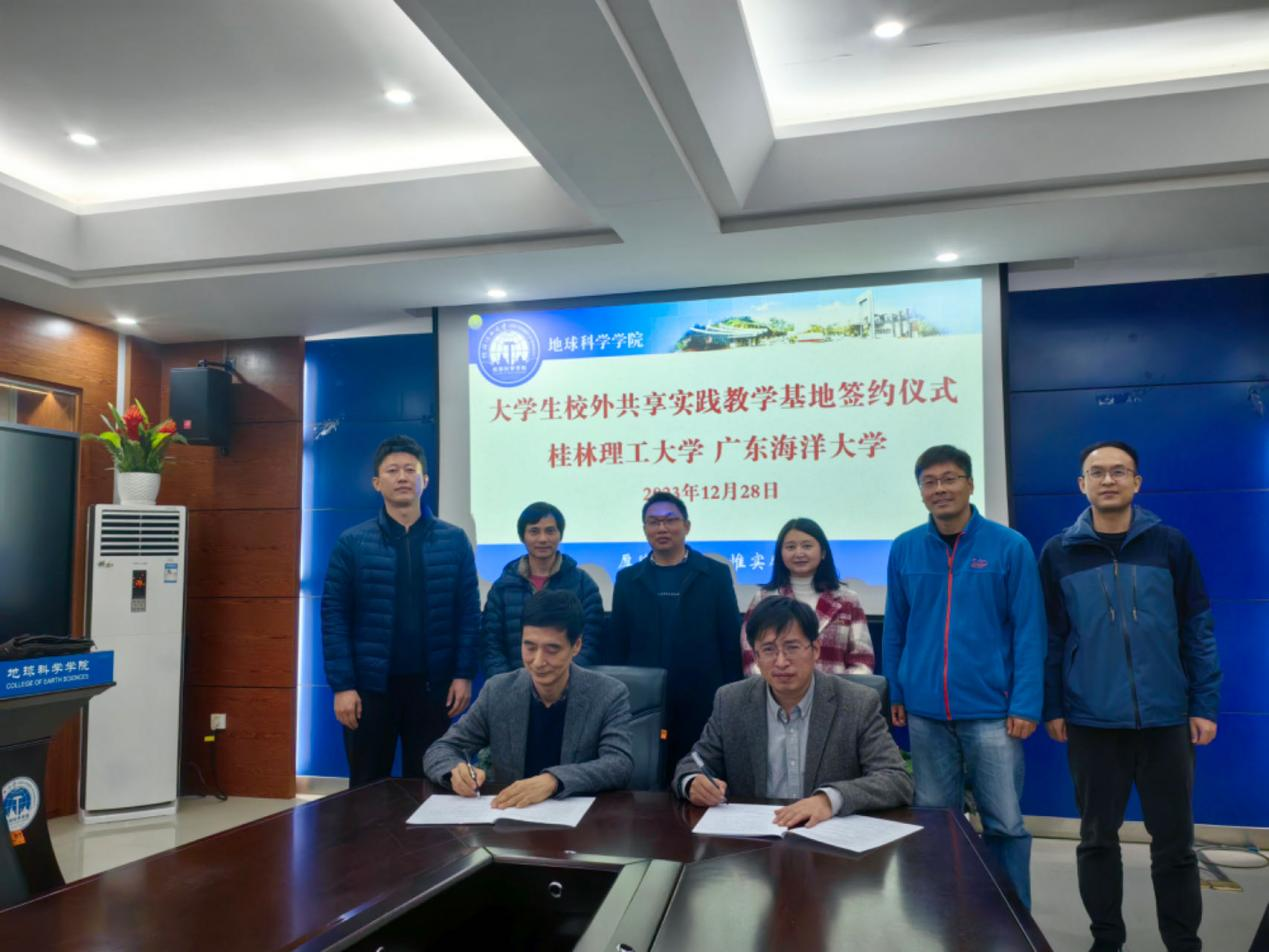 桂林理工大学地球科学学院刘希军经理、付伟副经理、杨金豹主任、方贵聪副主任、马强分副主任和吴杰老师等热情的接待了薛经理一行人。座谈会上,刘希军经理和付伟副经理介绍了桂林理工大学地球科学学院的基本情况,表达了深度合作的意向。杨金豹主任详细介绍了广西桂林灌阳实习基地的建设历史和实习基地优势。随后,薛宇峰副经理详细介绍了公司william威廉中文官网的团队力量、教学和科研成果,以及海气实验班人才培养方案等。双方在座谈会上表达了强烈的深度合作意愿,并在会后签署了实习基地协议书,就海洋地质方向的人才培养和科研合作达成了共识。
