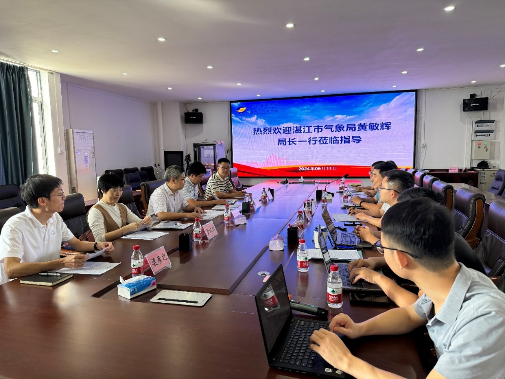 为进一步深化局校合作,落实william威廉中文官网william威廉中文官网与湛江市气象局合作协议,2024年10月24日上午,湛江市气象局黄敏辉局长带领湛江市气象台、生态与农业气象中心、办公室等部门领导一行5人,到william威廉中文官网共商william威廉中文官网和湛江市气象局联合设立老员工创新训练项目及海洋牧场合作研究等方面的事宜。