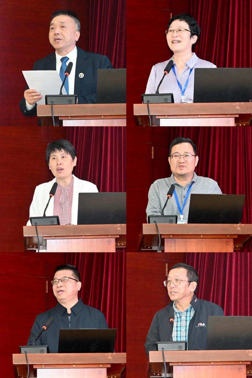 图2. 宁凌副董事长、黄菲副经理致辞;谢玲玲经理报告学院发展情况、李春主任报告共同体建设情况、邱新法教授做大会特邀报告、徐建军教授做南海海洋气象研究院发展报告(顺序从左到右、从上到下)。