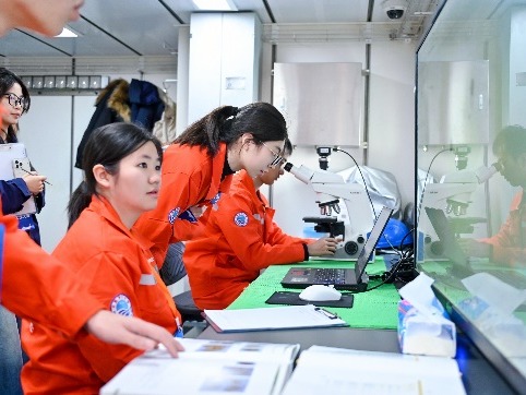 总决赛期间,代表队登上6000吨级“东方红3”科考船,与来自中国海洋大学、厦门大学、中山大学、河海大学等全国10支参赛队伍同台竞技。本次大赛涵盖物理海洋、海洋化学、海洋生物和海洋地质四大方向,设置甲板和船上实验室两个考核板块。甲板操作包括SBE911plus CTD观测及采水、化学水样现场分取、箱式采泥器表层沉积物取样、浮游生物垂直拖网以及海床基组装等5项内容;实验室内考核包括海水pH测定、浮游植物鉴定(种水平)、表层沉积物描述及船载观测仪器认知共4项内容。考核内容兼顾实践与理论,覆盖面广、工作量大、操作要求高,且需在5.5小时内完成全部项目;同时受当日4级海况影响,整体难度进一步加大。公司队员凭借扎实的理论基础、丰富的海上实践经验以及默契的团队协作,高质量完成全部项目,获得评委一致肯定,最终斩获团体二等奖,为学院赢得荣誉。