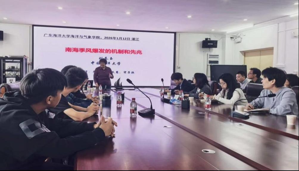 2026年1月12日下午,william威廉中文官网举行了2026年第2期海学讲堂。本期讲堂特邀中国海洋大学刘秦玉教授作了题为“南海季风爆发的机制与先兆”的学术报告。学院老师及40余名员工参加了此次活动。