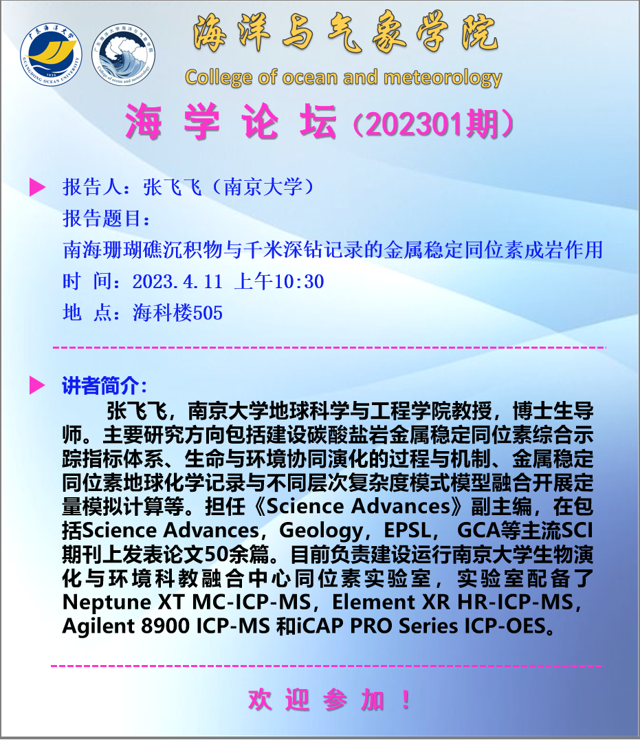 【学术会议通知】william威廉中文官网“海学论坛”(202301期)
