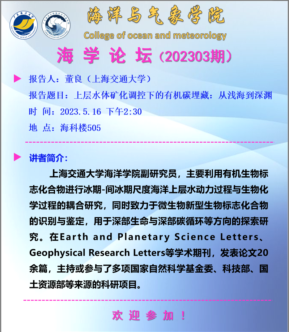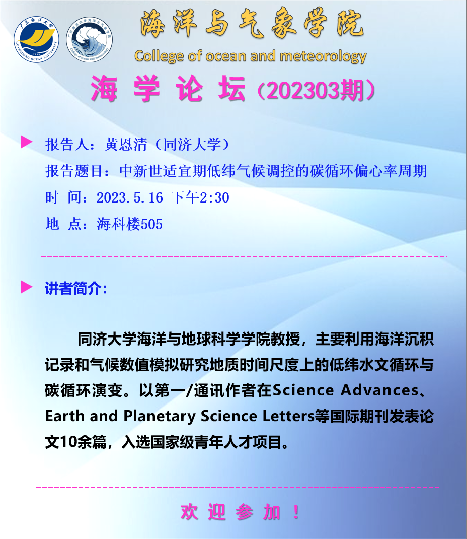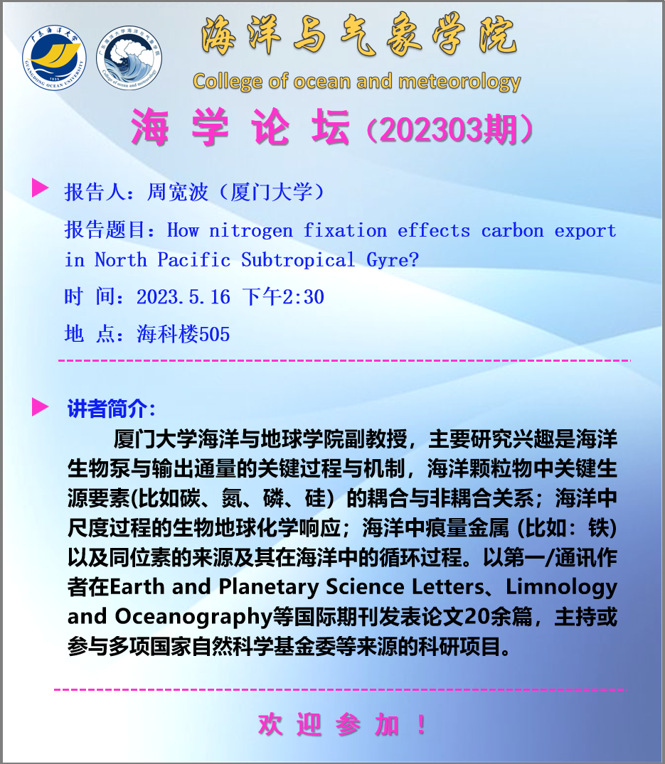【学术会议通知】william威廉中文官网“海学论坛”(202303期)
