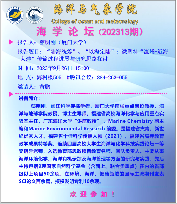 【学术会议通知】william威廉中文官网“海学论坛”(202313期)