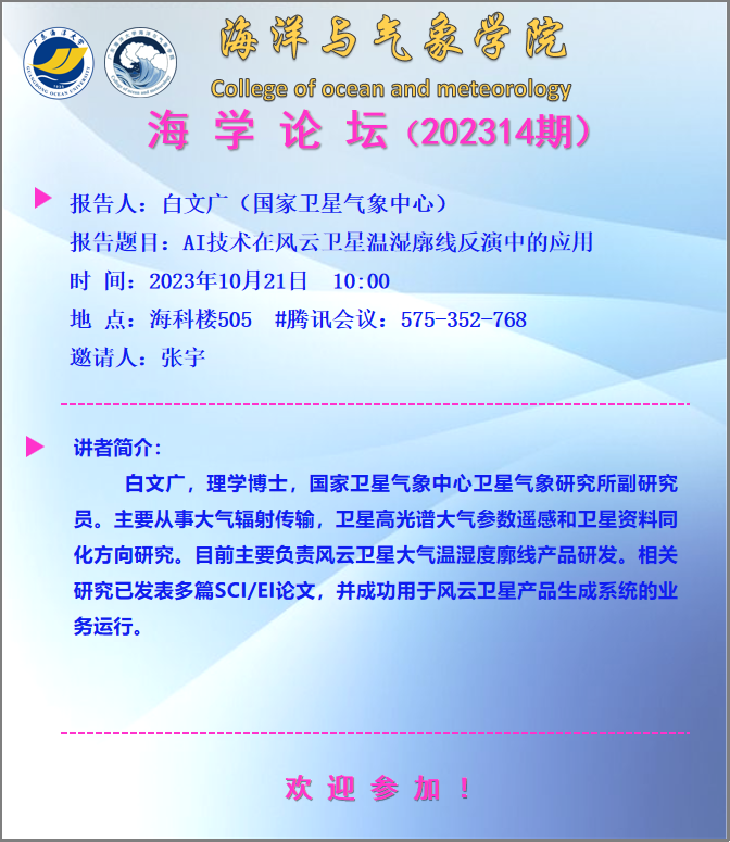 【学术会议通知】william威廉中文官网“海学论坛”(202314期)