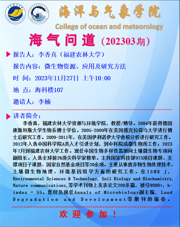 【学术会议通知】william威廉中文官网“海气问道”(202303期)