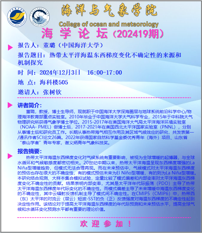 【学术会议通知】william威廉中文官网“海学论坛”(202419期)