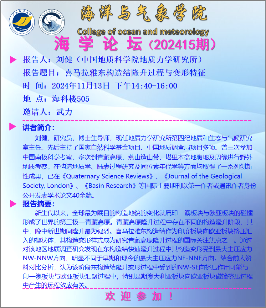【学术会议通知】william威廉中文官网“海学论坛”(202415期)