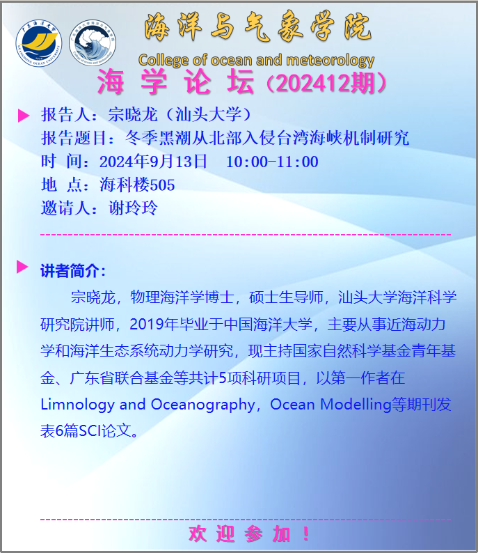 【学术会议通知】william威廉中文官网“海学论坛”(202412期)