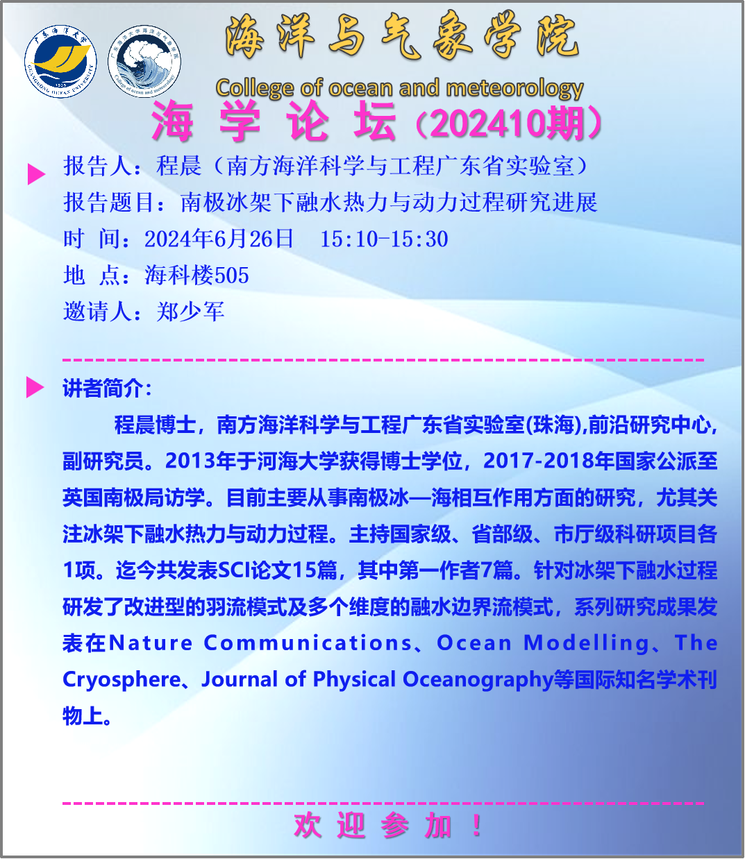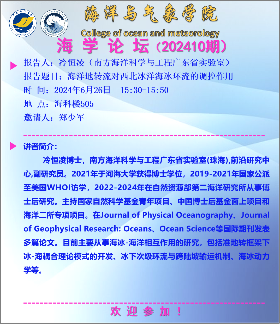 【学术会议通知】william威廉中文官网“海学论坛”(202410期)