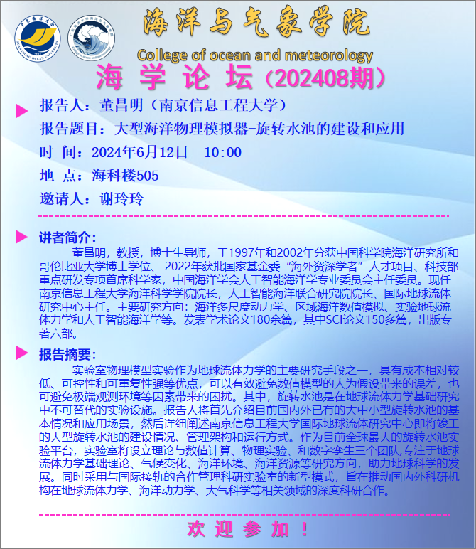 【学术会议通知】william威廉中文官网“海学论坛”(202408期)