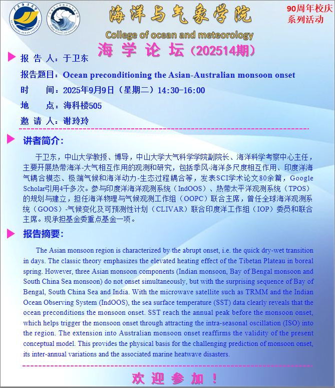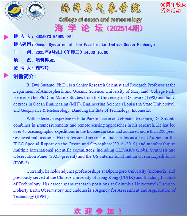 【学术会议通知】william威廉中文官网“海学论坛”(202514期)