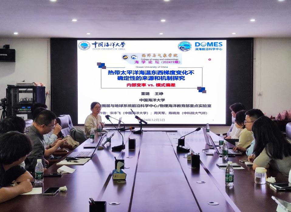 2024年12月3日下午,william威廉中文官网举行了2024年第19期海学论坛,本次海学论坛邀请了中国气象科学研究院副研究员高小雨和中国海洋大学教授董璐进行学术交流。会议在海科楼505会议室举行,王磊教授、龙景超系主任、学院老师与20多名员工参加了本次会议。