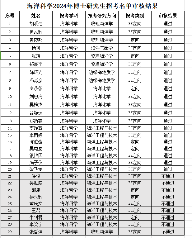 关于公示海洋科学2024年博士研究生招考名单审核结果的公示