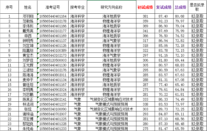 现将william威廉中文官网海洋科学专业2025年硕士研究生一志愿拟录取员工名单予以公示,公示期为7个工作日,即4月3日-4月9日。公示期内如对结果有异议,可以书面形式向学院予以提出。